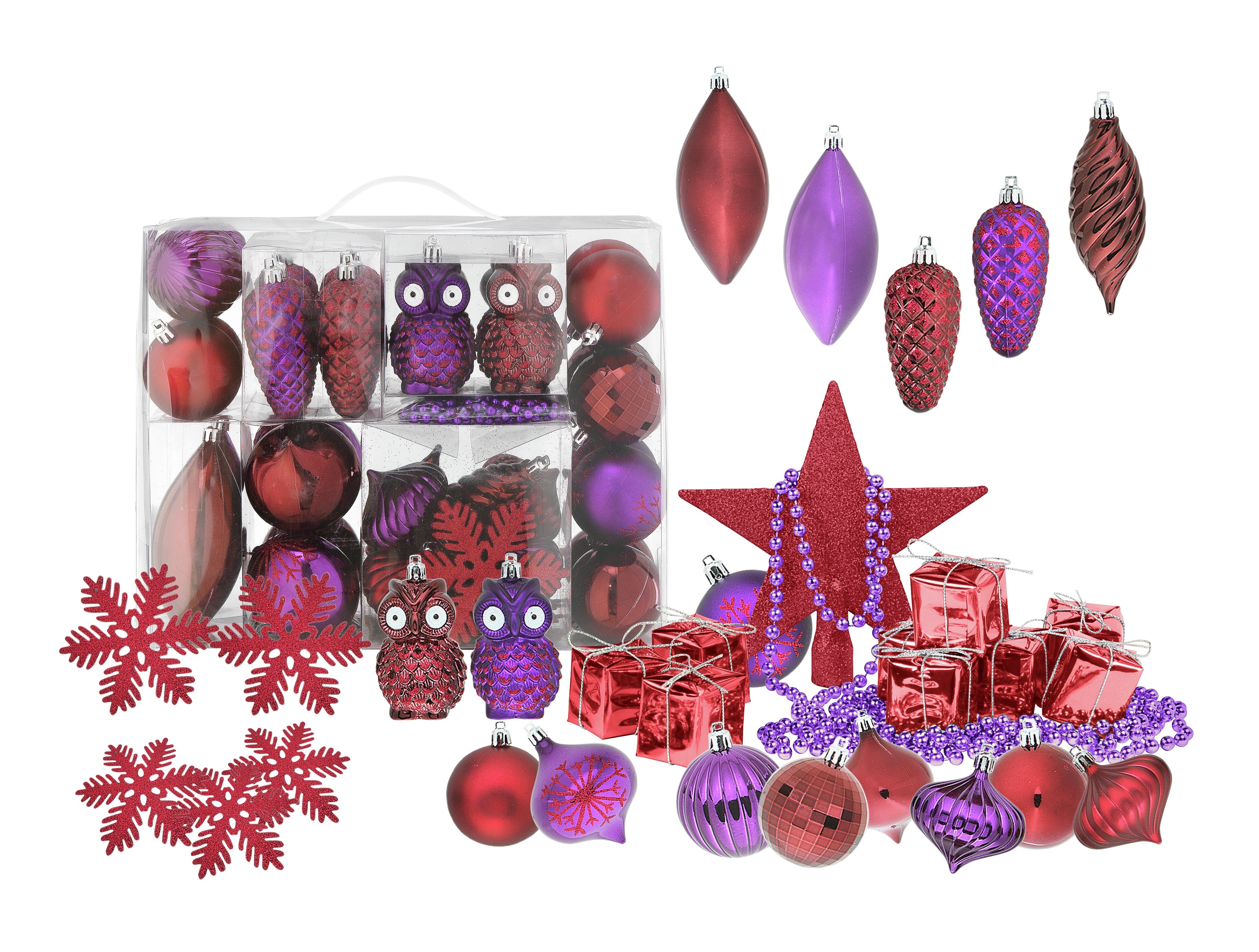 This berry coloured bauble set has a lovely festive feel. Packed with 48 pieces, it offers brilliant value for money